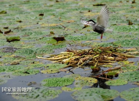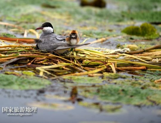 8月3日,那木斯萊濕地,須浮鷗在哺育幼鳥(niǎo)。