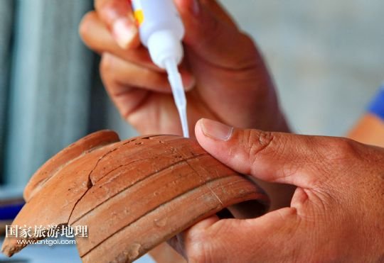 9月20日,考古人員在修復(fù)肅寧縣梁村鎮(zhèn)北白寺村附近古村落遺址出土的陶器。