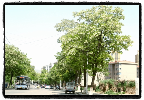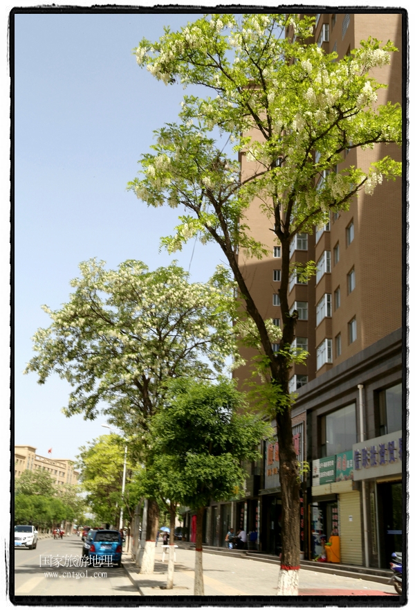 國家旅游地理 甘肅平?jīng)?月31日訊(通訊員 鄭兵 攝影報道)日前,甘肅省平?jīng)鍪谐菂^(qū)各大主要街道兩旁的槐樹開滿花朵,一簇一簇,一串一串,白的像雪,美得像畫,冰肌綽約,清素高雅,滿街道彌漫著槐花的馥郁香氣,讓來往的行人為之陶醉。宋朝大文豪蘇東坡曾有詩云:“槐林五月蕩瓊花,郁郁芬芳醉萬家。”據(jù)悉,槐花除了觀賞意外,用槐花做的湯飯還有開胃解毒瀉火等功效,是食藥兩用的的極品,被譽為“天賜的禮物”。