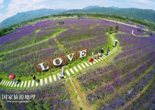 國家旅游地理 浙江溫州6月16日訊 6月16日,在浙江省溫州市平陽縣山門現(xiàn)代農(nóng)業(yè)園,游客徜徉在馬鞭草花海里?;ê@镓Q立的一個“LOVE”造型格外醒目。新華社發(fā)(蘇巧將 攝)