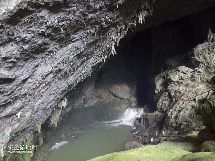 這是羅甸縣的大小井風(fēng)景區(qū)的響水洞天坑,典型的喀斯特地貌景觀。這個(gè)天坑位于大井出水口西側(cè)大約200米處,坑口高500米,寬500,深200米。內(nèi)有暗河,水聲轟鳴,在坑外十里處都可以清晰聽到,故稱為響水洞天坑坑口寬敞明亮,暗河奔流,水花飛揚(yáng),氣勢(shì)磅礴,蔚然壯觀??觾?nèi)巨大的鐘乳石如寶劍懸掛在墻壁上,有的錯(cuò)落城橋,有的如猛虎下山,千姿百態(tài),美不勝收。